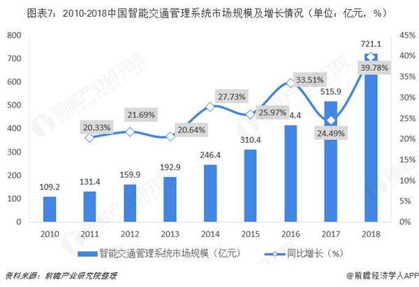人脸识别技术地运用于智能交通领域,在近几年,信息技术推动了整个智能交通的理念,技术应用发生创新性变革。包括航空客运在内,2018年我国智能交通管理系统行业市场规模约为720亿元。