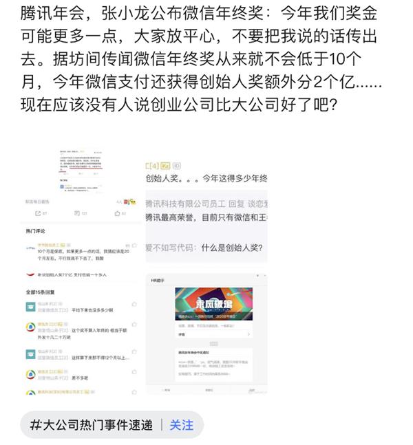 随后,腾讯张军辟谣,他表示人均280万那是不可能的,不过年终奖确实有增加。