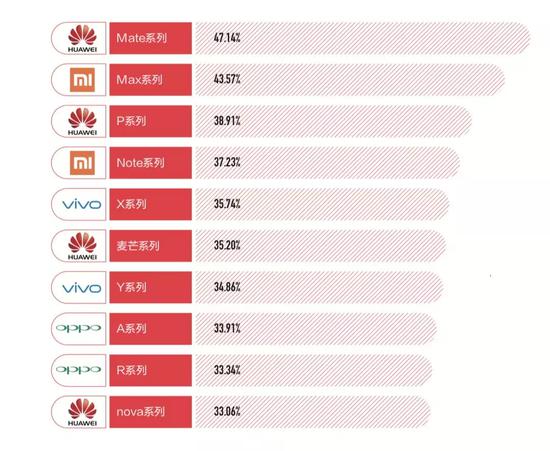 想要做到高留存,还是要针对特殊人群推出针对性产品。如华为的 Mate 系列、小米的 Max 系列,这都是成功的代表。前者数据超过 47%,后者数据则是达到了 43%,是国产品牌中唯一留存率超过 40% 的两个产品线。