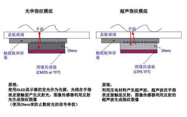 屏下指纹,实现原理基本都是透过屏幕来进行可传递信号的往返,一者传递的是反射光线,一者反射的超声波信号绘制图像。两者的差异和如今的技术手段、自身特性都有关联。